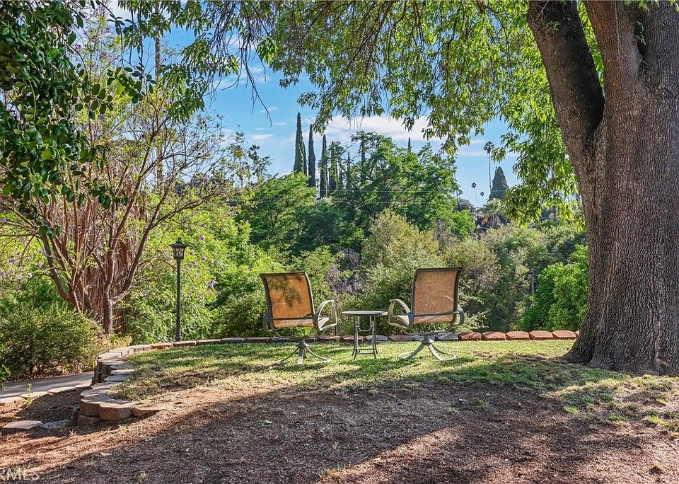 Feels like Prospect Park, escape to your own private sanctuary, a sprawling single-story estate nestled on 1.4 acres tucked away in a hidden pocket of South Redlands. Access is, down a private driveway off another private drive, with its own circular driveway, well off the street. This property offers an extraordinary level of seclusion and tranquility rarely found, feeling like your very own private park. This is a 4-bedroom, 3-bathroom residence of 2,131 sq ft of comfortable living space. Inside, enjoy modern comforts including rich wood floors and a recently installed high-efficiency HVAC system (heat pump & gas furnace) paired with an solar panel system for significant energy savings, and a house generator for those times when needed for the refrigerator, lights, HVAC, and many outlets throughout. The heart of the home features a chef's delight kitchen equipped with high end Viking appliances, including a professional-grade stove/cooktop, refrigerator, and the warming drawer with so much cabinetry and storage. The spacious living areas flow seamlessly, inviting relaxation and entertaining. Step outside to experience a true Southern California oasis. The expansive grounds feature a variety of fruit trees, such as lemon, peach, navel, pomegranate, plum and grapefruit, creating a mini-orchard. Unwind around the firepit by the serene backyard pond, or enjoy endless summer days by the large in-ground pool. Multiple outdoor living spaces enhance the lifestyle, from the charming front porch perfect for morning coffee to a unique balcony next to one of the two garages, providing a fantastic spot to unwind and enjoy the sunset views over your private retreat. Expansive parking is provided by the circular drive and dual garages. Located a block from Prospect Park in prestigious South Redlands, enjoy peaceful seclusion while remaining close to top-rated schools (Kimberly Elementary, Moore Middle, Redlands High), downtown dining, and shopping. This is more than a home; it's an exclusive lifestyle retreat offering space, luxury, and ultimate privacy.