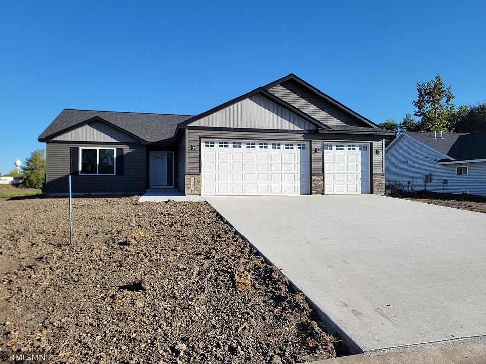 **UNDER CONSTRUCTION SPEC HOME** One level living lookout rambler. This home features attached 3 car garage, open concept floor plan for living room w/gas fireplace, dining and kitchen. Finishes include Granite countertops, soft close drawers, stainless steel appliances, tile backsplash and pantry in kitchen. Private primary suite with walk in shower and dual sinks, Quartz tops in bathrooms, laundry/mud room off of garage entrance. Unfinished lower level offers plenty of storage space and contains possible future 4th & 5th bedrooms, bathroom, family room and storage rooms. Easy access to Hwy 5. Inquire about the 1-0 Preferred Lender Paid Rate Buy Down.
