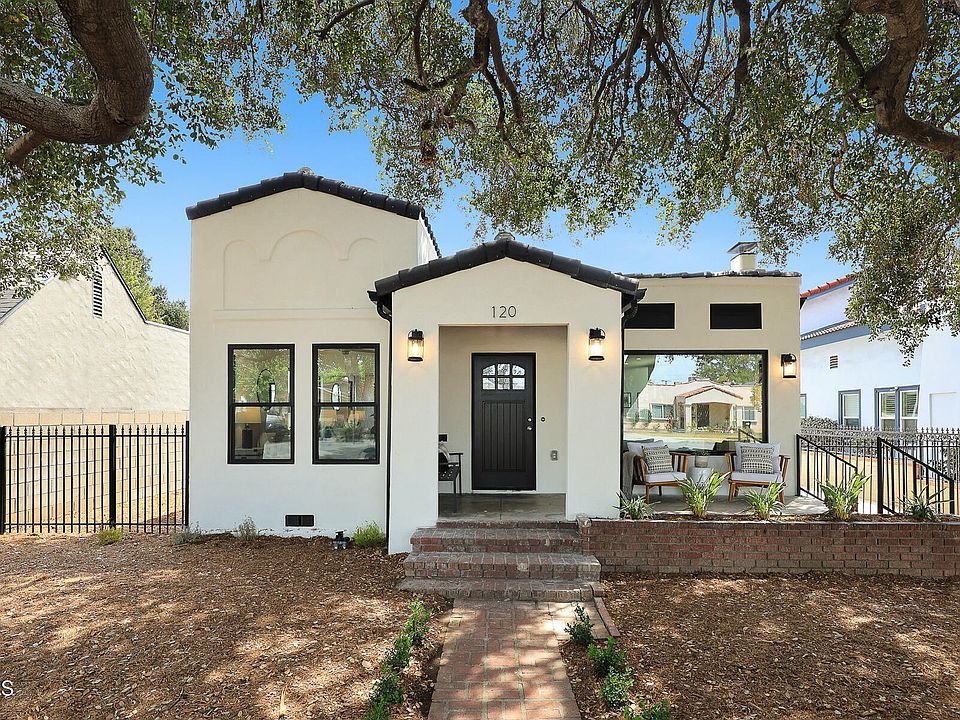 Stunning Newly Remodeled 1920's Spanish retreat. Stylish open concept design features a spacious living area, dining area, office nook and kitchen. Breathtaking floor to ceiling tile fireplace and large picture window creates an elegant living area. Intimate dining area leads to the tastefully designed kitchen featuring custom cabinetry, newly installed stainless-steel appliances, quartzite counters and convenient access to the laundry room. Luxurious Master Suite boasts two closets, French door access to rear deck, and serene bath with dual vanity and lavish walk-in shower. Complete with full bath and additional bedroom. Expansive rear yard offers endless possibilities to create your very own dream backyard.