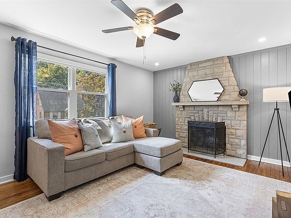 Endearing Crescent Hills Cape-style home offers 4 bedrooms and 2 full baths on a quarter-acre wooded parcel. A manicured lawn and like-new concrete driveway + retaining wall set the stage for a “vintage meets modern” best-of-both-worlds interior. The entry opens to a bright living room and adjoining dining area, where restored hardwoods and a stone fireplace vie for the spotlight. The showstopper kitchen boasts stainless steel appliances and stone counters, while a main-level sleeping wing offers two private bedrooms and a modernized full hall bath. Upstairs, find a king-sized primary, a fourth bedroom with a walk-in closet, and the second hall bath. The full-height basement features laundry, a recent HVAC system (2024), and integral garage access. Out back, a new shed and covered patio survey towering trees in the fully fenced yard. Steps to Crescent Hills Park, one mile to Penn Hills Shopping Center, and three miles to Route 376.