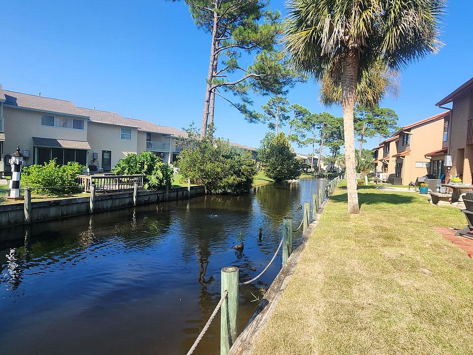 Discover Gulf Highlands Beach Resort in the heart of Panama City Beach, Florida! Park at your front door and walk to the white sand and crystal blue water. This corner unit is one of the closest townhomes to the Gulf! Just steps to the beachfront clubhouse with pool directly on the sand! This Grande Island townhome is fully furnished and ready for your family! Never rented, but short-term rentals are allowed in this resort. Upon entering this spacious townhome, you will appreciate the open floor plan with its many features. The full-sized kitchen with an oversized breakfast bar and abundant cabinet and counter space makes this the ideal place for friends and families to gather. The living area features a gas log fireplace and an extended seating area with sliding glass doors leading to a private patio overlooking the canal. Sit and enjoy the wildlife as you feed the turtles and watch the herons sun on the edge. Gulf Highlands offers an array of amenities including 11 swimming pools (5 heated), 3 tennis courts, pickle ball, fitness center, 18 hole mini-golf, 2 playgrounds, shuffleboard, conference center, and a private clubhouse featuring a restaurant and pool overlooking the Gulf. Numerous entertainment options are available within walking or golf cart distance, including Rock'it Lanes Bowling/Skating/Arcade, Just Jump Trampoline Park, Shipwreck Island Water Park, Ripley's Believe it or Not, Wonder Works, fishing pier, shops, restaurants, bars, and more. This secure, golf cart-friendly resort offers an ideal environment for short-term renters and full-time residents alike. The relatively low HOA fees cover various amenities, including security, trash, internet, landscaping, pool servicing, and termite & pest control. At Gulf Highlands Beach Resort, every season is Beach Season! Roof 2019, Water Heater 2019, A/C 2016, Tankless Water Heater with continuous hot water. Age, Sq Ft, and dimensions approximate.Age, SF, and dimensions approximate.