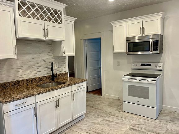 Updated kitchenRefinished hardwood flooringGranite counter topsTile backsplashTile flooring