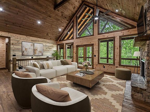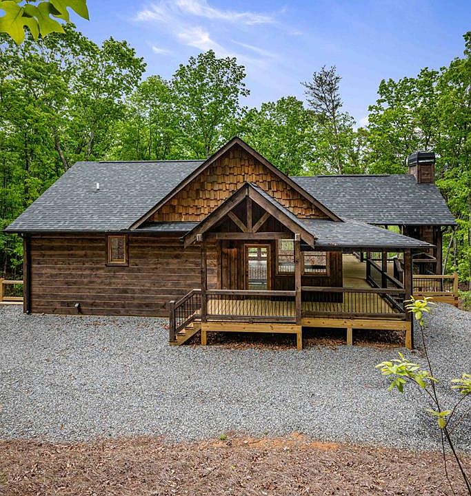 Take a look at this charming brand new construction in the coveted Green Ridge Community! Located in the heart of the Aska Adventure Area - you'll be close to outdoor activities & downtown Blue Ridge! When you walk in, you will feel right at home with the open concept living design, a floor-to-ceiling stone fireplace, vaulted ceilings & a beautiful kitchen with custom built cabinets + new appliances. The master suite is conveniently located on the main floor, as well as the 1/2 bath + laundry to eliminate any hassle. The master bath boasts a large & beautiful tile shower, as well as granite countertops on a spacious double vanity. The fully finished basement has 2 bedrooms, 1 bathroom & is complete with a full living area with a second fireplace & wet bar. You will have plenty of options for outdoor entertainment with this one! This cabin is situated on a peaceful, wooded lot & has a deck on both levels, an additional party porch on the main level with a third stone fireplace & an easily accessible outdoor fire pit area. Ready for a buyer today! Whether you are looking for a retirement home, home away from home, or an investment property - snatch this one up while you still can!