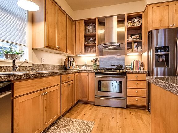 Location and quality is everything! This gorgeous sunny one level flat offers all the comforts of home. Secure parking, elevator, propane stove for cozy days & large covered deck for outside enjoyement. High end appliances, granite, gas stove, high ceilings wainscot walls, tall windows, wood plantation blinds and built in custom murphy bed all provide the perfect backdrop to downtown living. Conveniently located near theaters, restaurants, in the heart of Winslow.