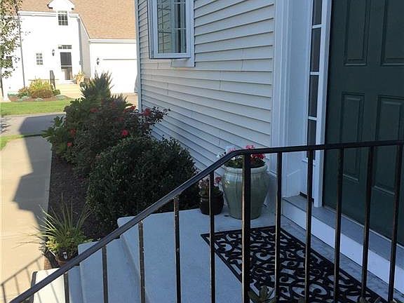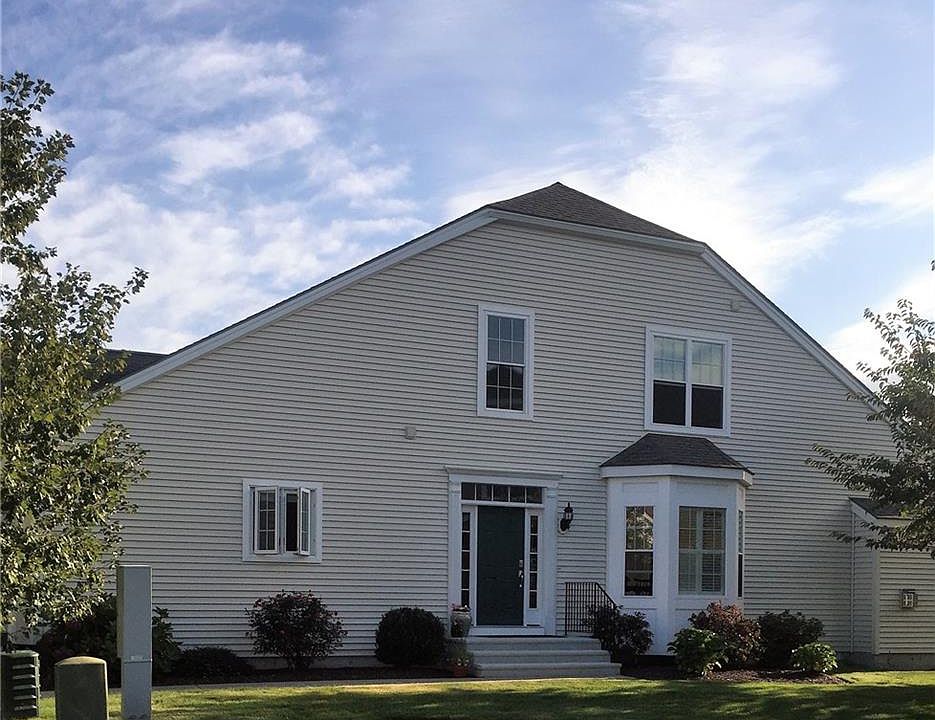 Stunning foyer entryway with curved staircase and vaulted ceilings this almost new end unit has a feeling of a home. Fireplaced living room overlooks formal dining room with sliders to private deck. Granite/stainless eat-in-kitchen. Half bath and laundry area. Plantation shutters throughout give privacy with a bright and cheerful feel. First floor master suite with walk-in closet, soaking tub plus separate glass shower. Den/office completes first floor. Sweeping stairway to second floor great room plus bedroom and full bath. 2-car attached garage. Full basement. Great location. Walk or short ride on back road to shopping and dining in Wakefield.