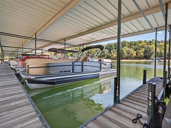 Covered boat slip on deep water! This move-in ready three bedroom home features an open floor plan with the primary suite on the main level, large sunroom, level backyard, and deeded dock slip. Spring Water lakefront community has a cart and walking path to the lake & community dock. The subdivision is also near Stone Creek Cove Golf Club - they offer public golf memberships as well as pool memberships.