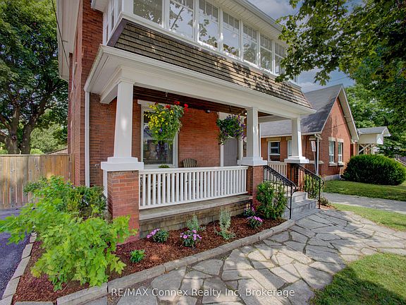 Welcome to 120 Harris Street, a distinguished brick 2.5-storey residence situated in one of the area's most desirable family neighborhood's. Positioned on a spacious double lot, this property offers a double-wide driveway with parking for four vehicles and a fully fenced, beautifully landscaped backyard-a rare combination of charm, space, and convenience. Located just minutes from Lyon's Park, local baseball diamonds, and a short five-minute stroll to downtown, placing restaurants, shops, trails, and daily essentials all within effortless walking distance. Enjoy a lifestyle where errands require little more than a casual walk and entertainment for the kids is always close at hand. This home's stunning street presence is undeniable. Encompassing a deep, traditional front porch sets the tone for the character and comfort found throughout. Inside, thoughtful updates blend seamlessly with original charm. The main level features new engineered hardwood flooring in the inviting living room and generous dining room, complemented by high baseboards and comfort. The spacious, well-appointed kitchen offers ample counter and cabinet space and leads to a dedicated mudroom, a stylish 2-piece powder room with a brick accent wall, and direct access to the private back deck, interlocking patio, and landscaped yard. The second level has been refreshed with new broadloom throughout, enhancing both comfort and style. A large, beautifully updated 5-piece bathroom serves the floor, while the primary bedroom offers exceptional space, including room for a cozy reading nook and two illuminated double closets. The second bedroom is versatile and comfortable with built-in closets. Completing this level is a charming enclosed sunporch, providing a serene retreat. The fully finished attic delivers additional, highly versatile living area. Enhanced with laminate flooring, knee-wall storage, new foam insulation, and large windows. This is a rare blend of character, practicality, and lifestyle.