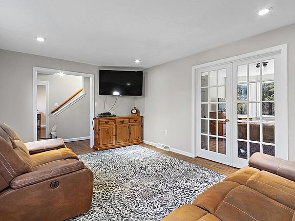 Your home for the New Year! This home is move-in ready! Upgrades include: refaced kitchen cabinets-granite counters-SS appliances-new paint througout-new carpet upstairs- a newer roof, cedar siding& heating system. Want more!? Step into your 3 season porch, filled with windows, leading to the newly finished HDWD floor living room with a cozy fireplace. Adjacent to this space, you'll find an updated half bath. The living room opens to the modern kitchen, bathed in natural light. A spacious family room with French doors that connect to the dining room completes the first floor. Upstairs, discover an expansive primary bedroom w/ Juliet balcony, along with two additional generously sized bedrooms and updated full bath featuring a tiled shower. The walk-out basement offers endless possibilities for a home office, teen hangout, gym or game room. The large yard is perfect for family gatherings and outdoor activities. Conveniently located near Route 1, 495, shopping the outlets and Pat Place!