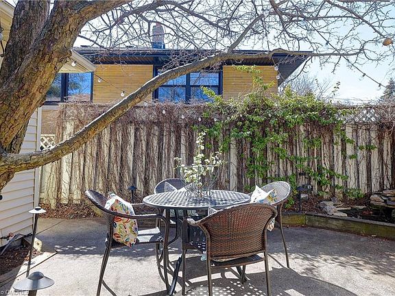 Wonderful updated home on a Muskoka-like private lot in the heart of trendy Kerr Village. Recent improvements including new roof (2018) new windows and sliding doors (2013), kitchen renovation (2013), new tankless hot water tank (rental 2016), new furnace and air conditioner (2016), new driveways (2017), painted (June 2017), new engineered hardwood floor in basement (2017), new granite counter and sink in the laundry room (2017) and renovated main bath (2017). Wonderful great room with a 10'10 smooth finished vaulted ceiling. Separate dining room. Renovated kitchen with custom cabinetry with crown mouldings and under-cabinet valance lighting, Cambria quartz counters and marble tile backsplash, pot lights and stainless steel appliances. Open concept family room with corner wood-burning fireplace with reclaimed brick surround and newer sliding door walkout to patio and amazing private yard. Main floor den/bedroom located off the foyer. Wonderful Master with hardwood floor and treetop and garden views. Luxurious renovated 5-piece main bathroom with quality cabinetry and quartz counter with two under-mount sinks with upgraded faucets, one-piece Kohler high efficiency toilet and tub/shower combination with a deep soaker tub. Lower level with recreation room, 3rd bedroom, updated laundry room and plenty of storage. Walk to Town and the Lake and enjoy the wonderful restaurants, coffee shops and specialty boutiques of Kerr Village. Quick access to Oakville GO and QEW.