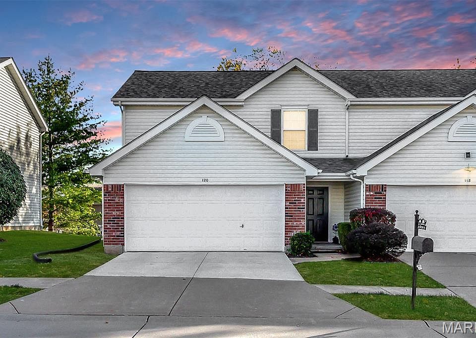 Welcome to this well-maintained 2-bedroom, 2.5 bath townhouse offering comfortable and convenient living in a desirable Wentzville location. The open floor plan features a spacious living area, dining space, and a functional kitchen with ample cabinetry. The primary suite includes a private bath and walk-in closet, while the second bedroom provides flexibility for guests or a home office. With a two car attached garage for plenty of storage. Enjoy the ease of low-maintenance living with the HOA covering exterior maintenance, lawn care, and snow removal. A private patio offers a relaxing outdoor space, and the location provides quick access to shopping, dining, schools, and major highways—making this condo an excellent opportunity for those seeking a move-in-ready home in Wentzville.