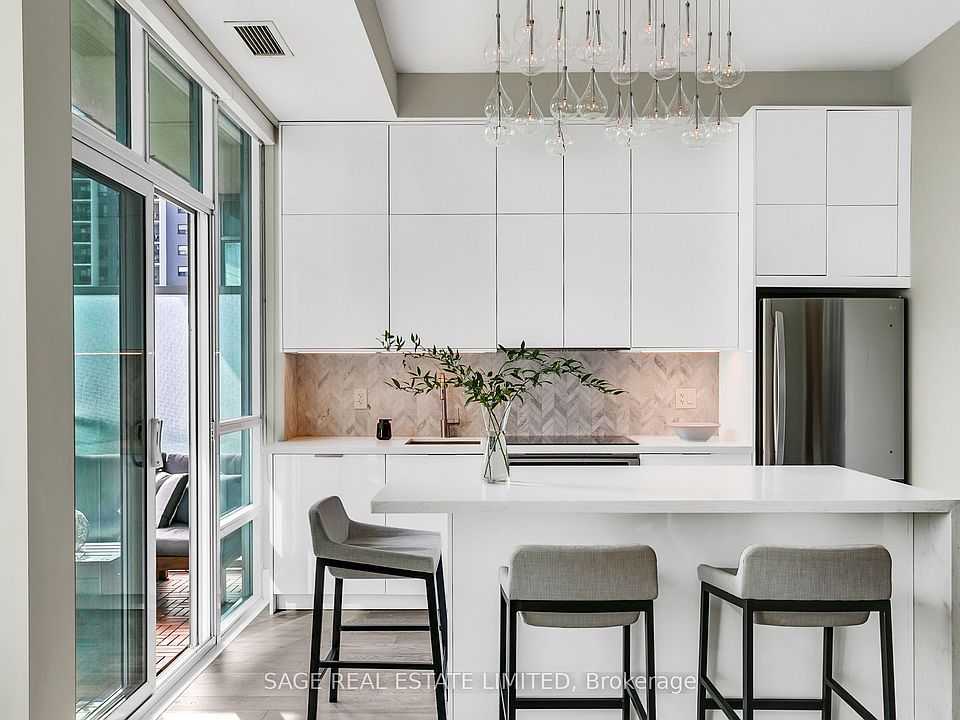 Completely renovated loft unitNew cabinetryQuartz countertopWaterfall islandMarble backsplashEngineered wood flooringQuiet parkette