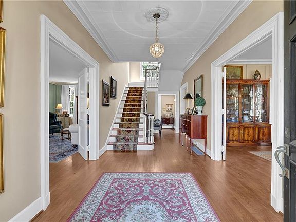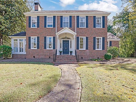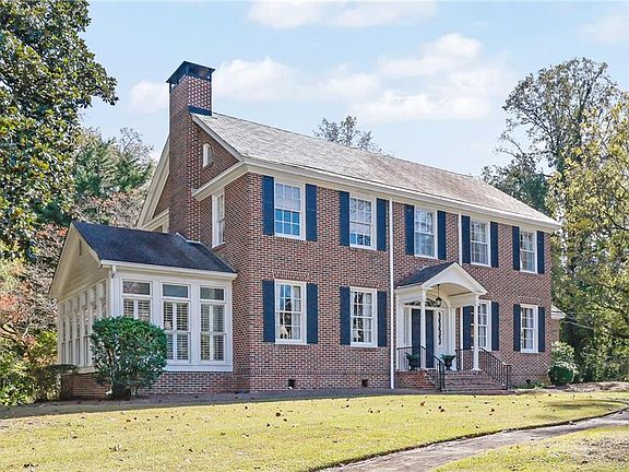120 Jeanette Street is a rare blend of architectural pedigree, craftsmanship, and tranquility — where classic Georgian design meets timeless Southern living. Designed in 1929 by Ivey & Crook, one of Atlanta’s most respected architectural firms, this distinguished residence exemplifies the Georgian Revival style — perfect symmetry, balanced proportions, and understated elegance. Constructed of rich red brick with contrasting black shutters, the façade presents a stately yet welcoming presence. A columned portico with fluted supports and a triangular pediment frames the front door, adorned with original sidelights and a delicate fanlight transom — glowing in afternoon sun and setting the tone for the craftsmanship within. A brick walkway winds through the front lawn, softening the symmetry and leading to the entrance. Mature trees, sweeping lawns, and thoughtful siting on three acres create a sense of quiet grandeur — spacious yet intimate. At the rear, a charming pool and pool/guest house with 1 bedroom and 1.5 bath offer a relaxed counterpoint to the home’s formality, ideal for entertaining or private retreat. Inside, graceful proportions, sunlight, and original details define the interiors. The central foyer showcases hardwood floors, intricate moldings, and a sweeping staircase that rises with understated elegance. Flanking rooms — a bright formal living room centered on a carved mantel and a balanced dining room overlooking the lawn — reflect Ivey & Crook’s mastery of flow and proportion. To one side, the formal living room centers on a traditional fireplace with a carved mantel and flanking windows that fill the space with natural light. The dining room on the opposite side mirrors this sense of proportion — bright, balanced, and open, with original millwork and double windows that look out to the beautiful lawn. Together, these rooms create an ideal setting for both entertaining and quiet evenings. The kitchen, filled with morning light, retains its vintage footprint and offers potential for sensitive modernization. Adjoining rooms provide inviting informal spaces, including a breakfast room with original glass-front cabinetry. Upstairs, four bedrooms continue the home’s timeless symmetry, with high ceilings, ample windows, and 1920s craftsmanship. Light shifts beautifully throughout the day, and two and a half baths serve the upper and main levels. The basement, with original plumbing and electrical connections, includes a long-unused bath — a glimpse into the home’s early design foresight. It offers flexible space for storage, a workshop, or future renovation. The three-acre property unfolds gently around the home, with manicured lawns, mature magnolias, and a natural sense of privacy. The pool and pool house, added later, harmonize beautifully with the landscape, giving the estate a quiet, resort-like quality. Lovingly cared for by only two families since 1929, this home stands as a living testament to Ivey & Crook’s enduring Southern grace, proportion, and light.