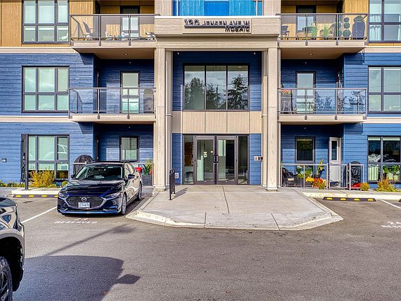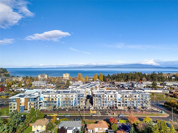 Welcome to Unit 209–120 Jensen Ave W, Parksville — a modern ocean-view 1-bed condo in the eco-conscious Mosaic complex (built 2023). This bright, open-concept home features 9-ft ceilings, and quality finishes throughout. The kitchen offers quartz countertops, undermount sink, subway-tile backsplash, and an island for extra workspace. Enjoy comfort with two wall A/C units (living area & bedroom) and peace of mind with smart water-leak sensors and an auto shut-off valve on the main line. The building includes an elevator for wheelchair access, EV-charging, and a dedicated storage unit. Perfectly located just steps to downtown shops, cafés, and the beach—coastal living at its best! All measurements approximate, verify if it is important. 2 Dogs or 2 Cats Allowed. Builder Warranty available.