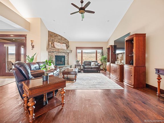Welcome to this 4-bedroom, 3-bathroom home where warmth and Wyoming charm meet everyday comfort. Step inside and you’ll immediately feel at home — the open floor plan connects the living, dining, and kitchen spaces so everything flows together, perfect for busy mornings, quiet nights, or gathering everyone around the table. Big windows bring in that Laramie light, and every finish feels warm and welcoming. The kitchen is ready for anything — weekday dinners or holiday spreads — with generous counter space, modern appliances, and room for everyone to pitch in. The private primary suite gives you a peaceful spot to unwind, while the additional bedrooms and bathrooms offer flexibility for guests, work, or play. And tucked above the garage is a hidden gem accessible by pull-down ladder — a one-of-a-kind space with endless possibilities. Whether you use it for creative projects, extra storage, or a quiet retreat, it’s a fun surprise that makes this home stand out. Step outside to enjoy a backyard built for Wyoming evenings — plenty of space for gardening, gathering, or just watching the sunset stretch across the sky. Comfort, charm, and a few unexpected touches — this home captures the feeling of Wyoming living, right where you want to be.