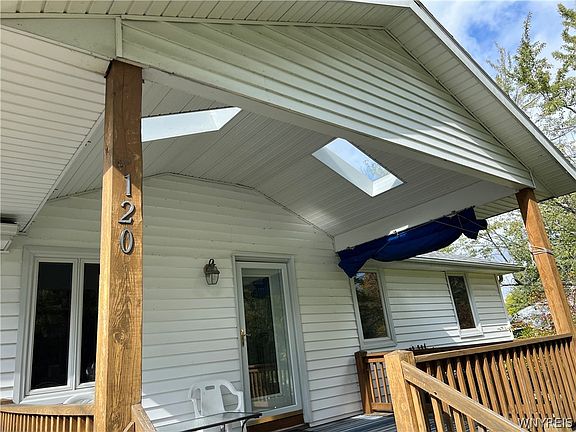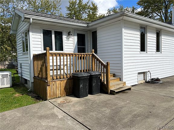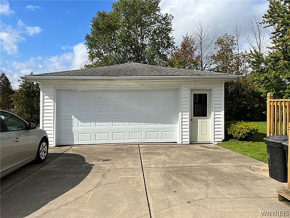 Open Floor plan! Large covered porch with double skylights & cathedral ceiling welcomes you into this vinyl sided ranch home with beautiful leaded glass exterior door on nearly half acre lot. Detached 2.5 car garage with newer door 2020. Living Room with ceiling fan & wood burning fireplace (1980), opens to Dining Room & U shaped kitchen with dishwasher & ceramic floors. First floor laundry room with shelving also serves as a mud room & leads to cozy deck. Full bath offers ceramic floors, tub surround, glass shower doors & closet storage. Freshly painted bedrooms. Beautiful yard with lots of room for fun in all of the seasons! Cedar closet in largest bedroom. Windows have wide sills which are perfect for herb gardens & indoor plants. Pull down stairs leads to attic. Updates include: concrete driveway 2002, Generator 2016, Electric panel 2016, Laundry room addition 2002 (completed by Superior Remodeling), Septic 2002 (1500 gallon dual chamber). Garage door 2020. Newer furnace. Replacement windows. Central Air. Basement will be professionally waterproofed by the end of November w/ warranty. Easy access to the 400 & minutes from the village of East Aurora!