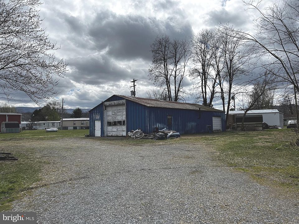 Great location in middle of town adjacent to South Branch of Potomac River, Protected by Corps of Engineers dike. Both the metal and block buildings have been used as auto body shops for past 50+ years. Public water and sewer are available, as well as three phase electric. Perfect for a granite/marble business with the tall garage doors and concrete floors! Level the buildings and place your own shop or business here!