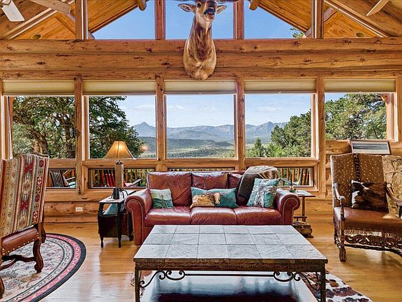 Every once in a while a house comes along and you say, ''This is something special''. This is that house. Sitting in the heart of Pleasant Valley, this Frontier log masterpiece is the epitome of Colorado mountain living, summer and winter, with its panoramic views from the Cimarrons to the San Juans, lush green pastures on the valley floor, quiet, and privacy, If the view wasn't enough, once you step through the door you immediately feel the warmth and comfort that is so much a part of this home. The logs, the beams and decking, the wood floors, the natural light, the comfortable rooms all invite you to sit down, put your feet up and know that while the world seems to be spinning out of control, this is a special space, and all is well.