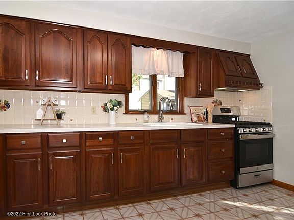 Immaculate ranch with newly refinished hardwoods throughout and freshly painted interior. This amazing home has 3 bedrooms on the main level, a full bath with jetted jacuzzi, bidet and cultured marble vanity top. This level also has a sunny living room with oversized bow window! Large kitchen with dining space which leads to a private side terraced patio surrounded by gardens! The lower level is bonus space/in-law with full kitchen, full bath, living room and laundry room. Integrated garage offers easy access to another patio area with pergola and additional fenced parking. The entire house is surrounded with gardens and includes a pear tree in the back yard along with 3 outbuildings/sheds. This home is maintenance free, vinyl sided, replacement windows, gas heat, wood stove, central air, concrete patio, nice masonry in front of home.
