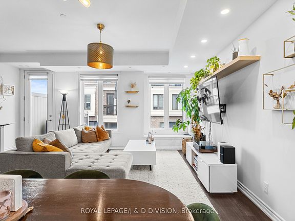 Discover this stunning 2-bedroom + den, 3-bath turnkey townhome - offering 2 balconies PLUS a rooftop terrace - truly one of the best layouts in the complex! 1 parking included! Designed for modern living, this bright open plan features expansive living and dining areas, a chic contemporary kitchen with full-size stainless steel appliances, breakfast bar, and ample cabinetry - perfect for the chef in your family. Entertain in style in the generous living room with walkout to private balcony - perfect for game day BBQ's! Host enviable dinner parties in your spacious dining room which easily seats 8-10. A quaint desk niche completes the main level. The spacious king-sized primary suite offers another private balcony! - Perfect for morning espresso! PLUS two large closets, and a private ensuite with a custom built-in cabinet (included!) The second bedroom comfortably fits a queen bed, a large closet, and is complemented by a four-piece hall bathroom with additional storage unit (included!). Storage throughout the home is exceptional, including a newer full-size ensuite laundry with plenty of room for cleaning supplies and brooms/mops. The light-filled third floor provides flexible space for a home office, exercise area, or reading nook, and opens to the private rooftop terrace - perfect for dining under the stars (The BBQ, Dining Set & storage shed are ALL included!) One conveniently located parking spot is just steps from your front door, and with snow removal and landscaping included in the maintenance fees, this home offers a truly carefree, turnkey lifestyle. Steps from the condo complex park, with ample visitor parking and EV charging capabilities- just move in and start living your best life! Enjoy unbeatable convenience with the Long Branch GO Station just steps away, plus quick access to major highways, the lake, trendy shops and cafes and restaurants. Pet-friendly community!