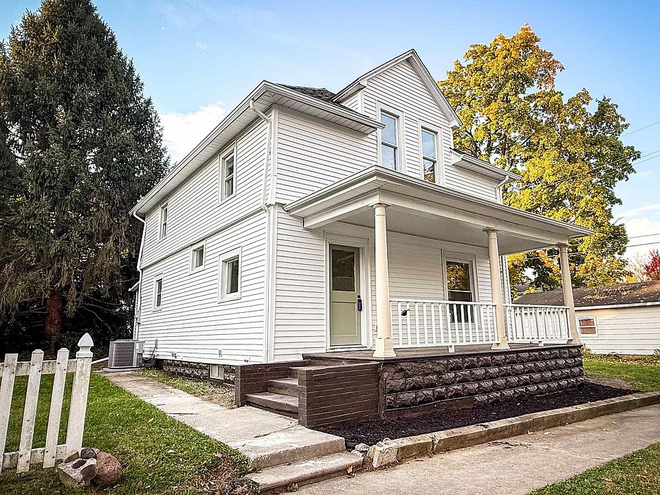Welcome to your dream home in Plymouth! This beautifully updated residence boasts fresh paint and stunning new flooring throughout, creating an inviting atmosphere you'll love coming home to. As you enter, you'll be greeted by an expansive living room filled with natural light from the large windows, providing a bright and airy space perfect for entertaining or relaxing. The modern lighting fixtures add a touch of contemporary elegance, enhancing the overall aesthetic of the home. The heart of this property is undoubtedly the brand-new kitchen, designed with both style and functionality in mind. Equipped with appliances, ample counter space, and sleek cabinetry, this kitchen is a chef's paradise! Step outside to the generous front porch, ideal for sipping morning coffee or enjoying warm summer evenings. Upstairs, you’ll find three very large bedrooms, each offering plenty of space to retreat and unwind. The newly remodeled bathroom is a standout feature, showcasing a clean, fresh design that will elevate your daily routines. Additional conveniences include a main floor laundry room and half bathroom and a basement for extra storage needs, ensuring everything has its place. The one-car attached garage provides easy access and protection from the elements. Rest easy knowing this home comes with peace of mind, featuring a new HVAC system, roof, and windows, ensuring comfort and efficiency for many years to come. Don't miss out on this exceptional Plymouth home that perfectly balances modern amenities with comfortable living.