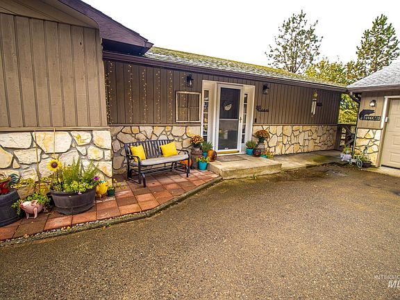 Enjoy scenic views from this beautiful home perfectly situated just above Orofino High School! The main level offers a spacious living area with fireplace insert, bright kitchen with new granite countertops, dining area with access to the large covered deck, a primary suite with private bath, and a second bedroom plus guest bath. The walkout basement features a family room with Blaze King wood stove, office, two additional bedrooms, one bath, and a utility room. Outdoors you’ll love the large fenced yard, fire pit area, covered patio, wood shed, and new fully enclosed chicken coop with rain-catcher water system and solar-powered automatic door. Previous owners installed the on-demand hot water system, furnace, and AC. This property offers comfort, functionality, and great outdoor living—on a spacious corner lot just minutes from schools and town! Check out Virtual Tour!!