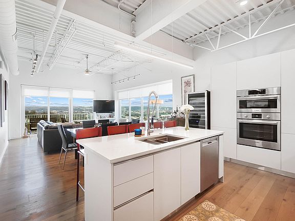Sleek designTop-tier stainless appliancesGourmet kitchenOpen living spacesSoaring ceilingsCorner-unit condoExposed beams