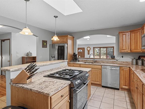 Welcome to 120 Maple Ridge Drive, where charm and comfort meet. The entry welcomes you with vaulted ceilings, skylights, and a touch of stained glass that fills the space with natural light and character. The main level offers a bright dining area surrounded by windows, a thoughtfully designed kitchen with a center island and casual dining nook, along with a cozy living room with vaulted ceilings overlooking the scenic ravine lot. Upstairs, you’ll find three inviting bedrooms, including a primary suite with an attached ¾ bath and an additional full bath. The lower level features a generous bedroom, a spacious family room highlighted by an exposed brick fireplace, and a combined laundry and ¾ bath complete with a utility sink. The open layout provides versatile space for a home office, studio, or media room. Additional highlights include an extra room perfect for storage or a home gym, a large two-stall garage, and a private backyard offering peaceful ravine views. The current owners also purchased the adjacent open parcels next to and across from the property, enhancing the sense of privacy and space. Residents of this neighborhood enjoy access to scenic association land with nature and ATV trails, picnic areas, and beautiful river valley surroundings — perfect for those who appreciate outdoor living and wide-open spaces. Welcome home to comfort, space, and natural beauty — all in one of Mankato’s most desirable neighborhoods.