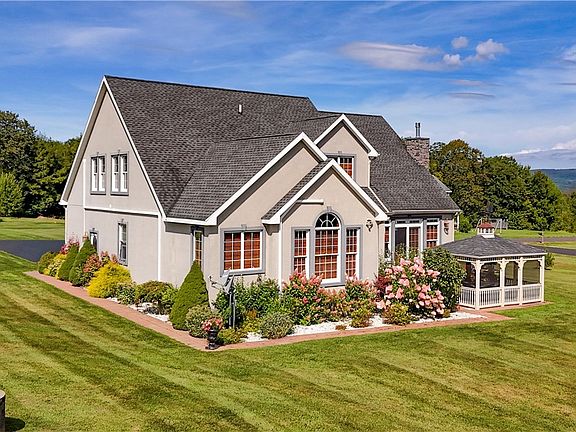 Upstairs, overlooking the living area below, the large primary bedroom offers plenty of closet space and peaceful privacy. Two additional well-sized bedrooms, a home office (easily convertible into another bedroom), and a full bath with granite sink and spacious tile shower complete the second floor. The expansive basement offers a world of possibilities, featuring tile flooring, a small kitchenette, and a utility sink—ideal for creating additional living space, a home gym, or even an in-law suite. Outside, the beautifully landscaped yard draws you toward the back patio and gazebo, where you can enjoy breathtaking views—perfect for sipping your morning coffee or unwinding after a long day.