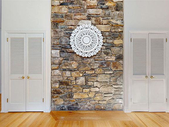 Set in one of Bedford Corners’ premier estate neighborhoods, this 4-bedroom, 4.5-bath Ranch combines modern comfort with timeless appeal. A welcoming foyer with a dramatic stone wall introduces the home, leading to a spacious living room with fireplace, soaring ceiling, hardwood floors, and walls of windows that flood the space with natural light. Sliding doors open to a large deck, creating seamless indoor-outdoor living. Conveniently located off the foyer, a guest bath with laundry adds everyday functionality.