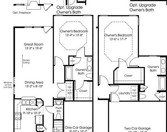 The two-story Gladstone is a bright and airy home with 3 bedrooms, 2 1/2 baths, and a two-car garage. It's filled with desirable features such as a spacious great room and dining room with soaring ceilings (with overlook) and a first-floor owner's suite. The owner's suite is spacious with a large private bath and huge walk-in closet! The laundry room is conveniently located on the first floor, too! The kitchen has an abundance of cabinet and counter space, along with a sunny dinette. Upstairs, there are 2 bedrooms with large closets a full bath and loft while the included walk-in storage room adds to the abundance of storage space.