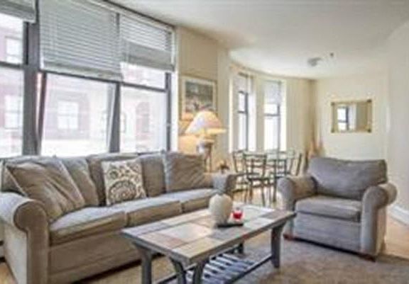 On the Seventh Floor of a historic elevator building ~ Heat & Hot Water Included. Large 2 Bed 2 Bath with extra large living room. Great views and light from twelve windows in this renovated apartment with hardwood floors. Large, sunny layout, with bedrooms on opposite sides of the apartment. Convenient location in the heart of the Financial District, and an easy walk to the Waterfront, the Boston Common, and the North End. Great restaurants and cafes nearby, with a new supermarket coming into the neighborhood soon. Enjoy privacy, with just one other apartment on this floor, and a laundry room to be shared just between the two apartments. In-Unit Laundry Option