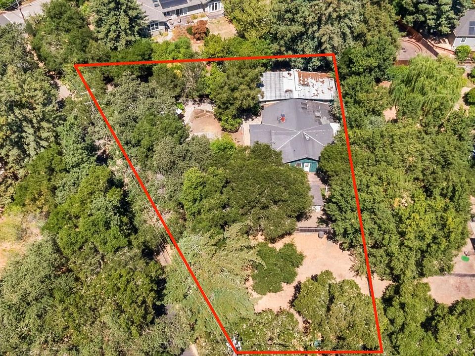 Private ~half-acre property is prime for redevelopment with an existing 3,365+/- sf house and ADU* with 5BDs and 5BAs, a carriage house with studio, paddock, two access gates and multiple outbuildings.
