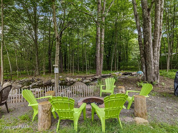 Opportunity awaits! Make an offer on this charming home & be in before the snow flies! Four season fun with 3/4 acre of property to enjoy & explore. Come sit a spell by the special water feature, a fish pond w/waterfall. Enjoy a meal on the large deck overlooking woodlands. A laid-back Pocono vibe awaits inside this clean classic chalet too, complete w/a stone fireplace in the main living area. Spacious rooms, a bathroom on each level, and 4 mini split AC/heat units throughout ensure comfort for all. Current owner has a permit to rent to vacation guests & offset expenses. Community offers pools, lakes & activities year-round, and is located for easy access to all of the attractions the region has to offer. Come & unwind, reconnect w/nature & indulge in some well-deserved relaxation!
