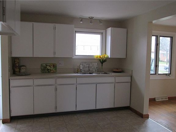 This all brick 3 bedroom ranch, 2 car garage, full basement, large living room and kitchen has been updated with new electric service, cable, and circuit breakers/GFI in kitchen and bathroom/concrete driveway/sewer line to house/roof/new floor in kitchen, bath, halls, lights entire house/kitchen counter, sink, floor, faucet/bathroom vanity, faucets, medicine cabinets, tub surround, and toilet/all of the interior house has been freshly painted.