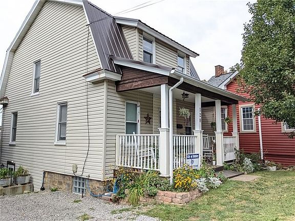 , this well cared for two story beams with pride of ownership! Curb appeal abounds with a covered front porch surrounded by colorful perennials and makes for inviting entry! Updates throughout include newer metal roof, new flooring on main level, updated half bath, galley kitchen complete with all appliances, and dining area that leads to newer deck overlooking the city! Upstairs you'll find new carpet, updated full bath with jet tub and ceramic tile surround, and master bedroom with new ceiling fan and double closets! Basement has glass block windows, ample shelving for storage and walks out to charming sitting area with bench swing in rear of home and the detached garage with newer roof. Two off street parking spaces next to home for guests are also included.
