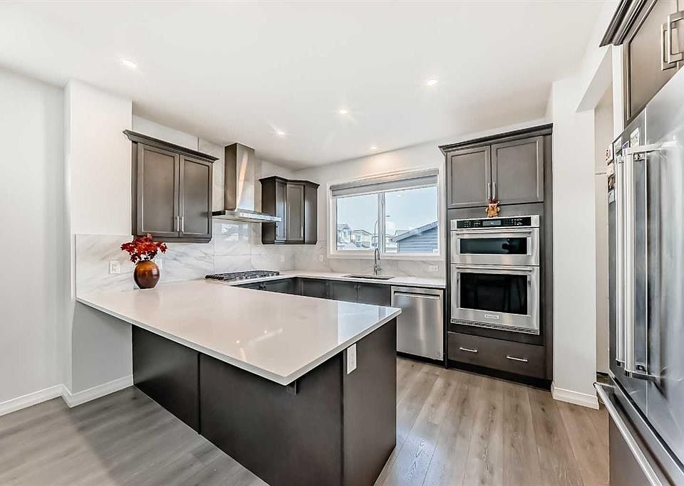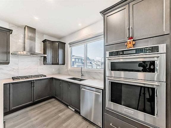 . Welcome to this beautifully upgraded 4-bedroom, 3-bathroom home perfectly situated on a desirable corner lot! Offering style, functionality, and smart living, this property stands out with its thoughtful design and premium features throughout. As you enter through the spacious front entrance, you’re greeted by an inviting open layout that flows seamlessly from room to room. The main floor includes a full bedroom and full bathroom, ideal for guests or multi-generational living. This home showcases numerous high-end upgrades, including: Built-in oven and microwave tower Gas cooktop burner and fireplace for cozy evenings Gas hook-up for BBQ on a 9.5’ x 13.10’ composite deck — perfect for entertaining Oversized double insulated garage (23.3’ x 23.3’) with remote and Wi-Fi connectivity Side entrance and concrete walkway for easy access or potential future suite Fully fenced corner lot providing privacy and outdoor enjoyment Central A/C for year-round comfort Solar panels for energy efficiency Moen Flo Smart Water Monitor & Shut-Off System for leak protection and peace of mind Handheld showerheads in all bathrooms Smart home features, including smart switches in the primary bedroom, kitchen, dining area, and foyer Under-cabinet lighting in the kitchen (counter area) Blinds and three stairwell windows adding extra natural light This home is truly a perfect blend of luxury, comfort, and innovation — ready for you to move in and enjoy!