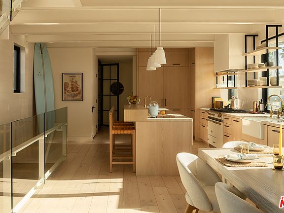 120 Hart Ave offers a rare blend of luxury, privacy, and effortless coastal living on one of Santa Monica's most desirable streets. Completely rebuilt in 2022 with meticulous attention to design and craftsmanship, this fully furnished beachfront home captures sweeping ocean views from Catalina to Malibu from nearly every angle. Inside, a stunning Henrybuilt kitchen stands as the heart of the homeappointed with a Lacanche stove, custom cabinetry, a generous island, and an exceptional lineup of chef-grade appliances, including two Subzero fridge/freezer units, dual Cove dishwashers, a Miele espresso system and a Uline wine fridge. Just off the kitchen, an intimate outdoor deck equipped with a pizza oven and Wolf barbecue makes indooroutdoor dining seamless. The open living and dining area is framed by floor-to-ceiling windows that draw in natural light and highlight the ocean backdrop. Warm walnut Madera floors run throughout, adding elegance to the breezy coastal feel.The primary suite functions as a private retreat, featuring bespoke cabinetry, spacious walk-in closets, and a spa-like bath. Retractable glass doors lead to a secluded outdoor escape complete with a contemporary fireplace, outdoor shower, and built-in cold plunge and hot tub. Electric Lutron shades throughout the home and an elevator servicing every level enhance comfort and convenience. Crowning the residence is a spectacular rooftop deck, an entertainer's dream! With panoramic ocean views, a plunge pool, Wolf barbecue, refrigeration, custom awnings, Tucci umbrellas, heaters, fire pit, and abundant lounge and dining areas, it's an unforgettable setting for gatherings or sunset unwinding. A four-car garage, dedicated laundry room, and mud room round out the home's thoughtful amenities. The home also presents a mirrored gym/dance studio (optional fifth bedroom) which is off the garage and laundry room. With immediate access to the beach and the boutiques and dining of Main Street, this exceptional property captures the very best of Santa Monica living.