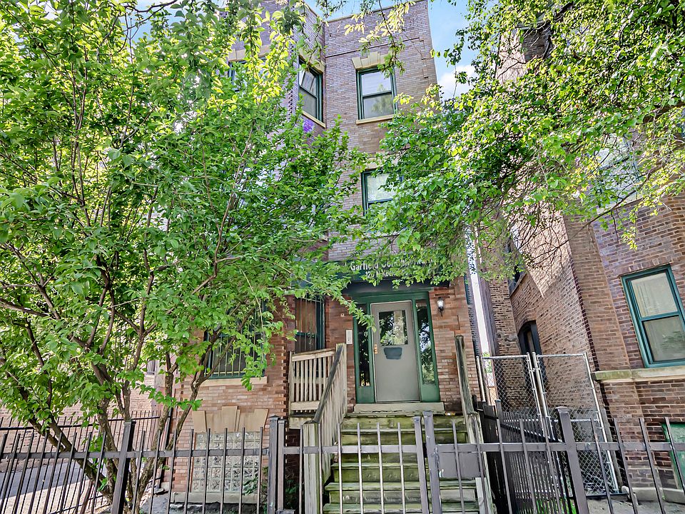 Awesome three flat building, 3rd floor unit : Vintage glazed brick construction, built in 1906 and rehabbed in 2016, 1,340 square feet. Large windows provide lots of eastern / southern natural lighting year round. Unit boasts of 3 spacious bedrooms with 9 ft clear ceilings and 1 full bath. Bay window in master bedroom, formal living and dining rooms with north and eastern exposure facing windows. 6 x 24 stone tile flooring throughout unit, easy to maintain! Full kitchen with appliances, individual central heating and air. Individual central unit hot water supply. Active Condo Assoc., gated communal landscaped courtyard and front yard. Weekly maintenance up keep, detached 1 car garage, usage of communal washer and dryers in basement. EZ access to the Loop via the green line (3blocks) or blue line & I-290 expressway only 6 blocks away. Call today and reserve your private viewing.