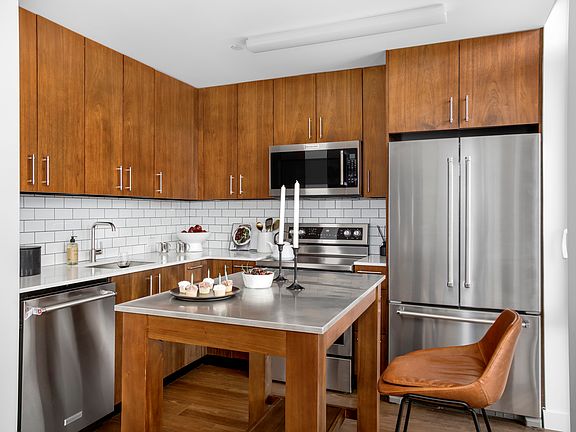 Building amenities include a ground-floor live/work lounge with access to a communal plaza designed by Scape Architects. The state-of-the-art fitness center features equipment by Life Fitness and Peloton. On the 9th floor is The Amberly's lifestyle lounge, wraparound sundeck and outdoor grilling and dining areas. The Overlook, a 33rd-floor sky lounge offers sweeping views of the Manhattan skyline, Brooklyn rooftops and the iconic New York Harbor. Bike storage and below-grade valet parking are also available. Kindly note photos are of a similar unit in the building.