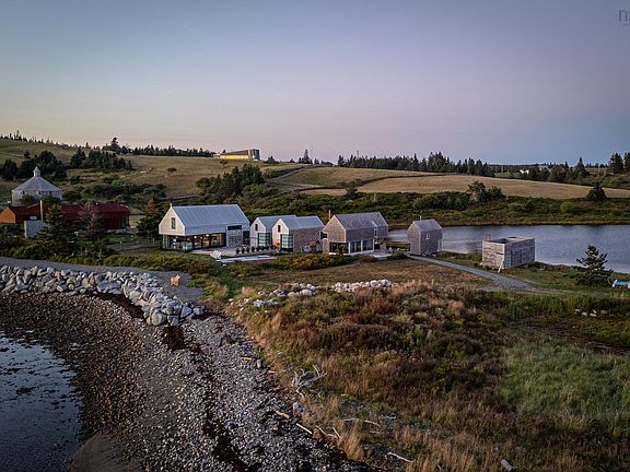 Point House, a rare offering by internationally acclaimed architect Brian MacKay-Lyons, occupies a coveted peninsula within AIA National Honour Award winning Shobac Farm - an enclave where design excellence, natural splendour and a history of place converge. Surrounded by Atlantic waters on three sides, Point House transcends conventional coastal living through its marriage of Nova Scotian vernacular and contemporary minimalism. Eastern White Cedar shingles and steep gabled rooflines honour Nova Scotia's architectural heritage while floor-to-ceiling glass walls dissolve boundaries between interior and exterior spaces. The double-height great room is punctuated by blackened steel totemic elements and anchored by a monumental hearth and a STUV high-efficiency wood stove while the gourmet galley kitchen features Wolf appliances and custom millwork. A sculptural steel ribbon staircase - equal parts function and art - ascends to the loft retreat, a private sanctuary suspended above. The two-story companion bunkie - with transformative pivoting walls - seamlessly merges interior comfort with the tranquility of the exterior tidal pond. An infinity hot tub at the water's edge completes this coastal sanctuary, where sunrise and sunset paint daily masterpieces across the sky. Steps from Hirtle's Beach and Gaff Point trails, this award-winning property offers unparalleled natural beauty. Exceptional opportunity for year-round living, luxury retreat, or income-generating investment in one of Atlantic Canada's most architecturally significant communities.
