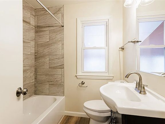 This three bedrooms and one bathroom single family house was just remodeled with new flooring, paint and brand new bathroom. House has an enclosed porch that overlooks fully fenced in back yard.