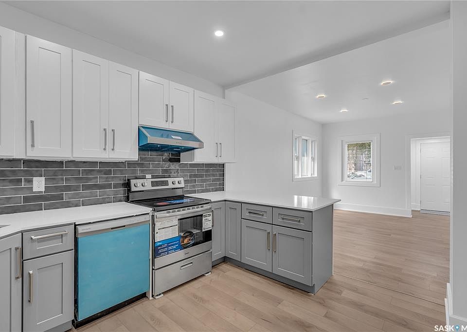 Welcome to 120 O Avenue S, Saskatoon – A Fully Updated Bungalow in Pleasant Hill! This beautifully renovated bungalow blends modern upgrades with functional design, making it an ideal choice for first-time buyers, families, or investors. Offering 960 sq. ft. of thoughtfully designed space, the home features 3 spacious bedrooms, 1 upgraded 4-piece bathroom, and 1 stylish 3-piece bathroom, along with a fully finished basement for added versatility. Step into the 9-foot vaulted front living room, which creates a bright, grand, and inviting first impression. The kitchen is a true showstopper, boasting granite countertops, brand-new stainless steel appliances, a large walk-in pantry, and 39" over-height white cabinetry, offering both modern style and abundant storage. The open-concept living and family rooms are designed for comfort and style, featuring Vinyl Plank flooring, new light fixtures with adjustable color tones, and large upgraded windows that flood the home with natural light. The fully finished lower level extends your living space with a cozy family room, a dedicated laundry area with brand-new high-end washer and dryer, and a large storage room. The home is also equipped with a high-efficiency furnace. Conveniently located in Pleasant Hill, this home is close to schools, parks, and all essential amenities. Priced at just $299,900, 120 O Avenue S is move-in ready and offers exceptional style, comfort, and value.