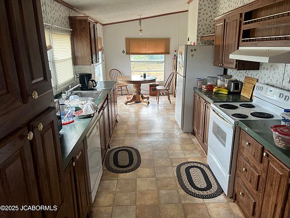 20 Acres with a 2040 sq.ft. 5 Bdrm. 3 bath manufactured home that has some great views overlooking the pasture for horses and the 30x40 horse barn with 5- 10x10 stalls and hay storage area. Mostly wooded so wildlife cover for deer and turkeys. New Fence installed 2014, 4 strands. New roof 2017. Wood burning fire place has not been used in several years. Not far from Lake of the Ozarks.