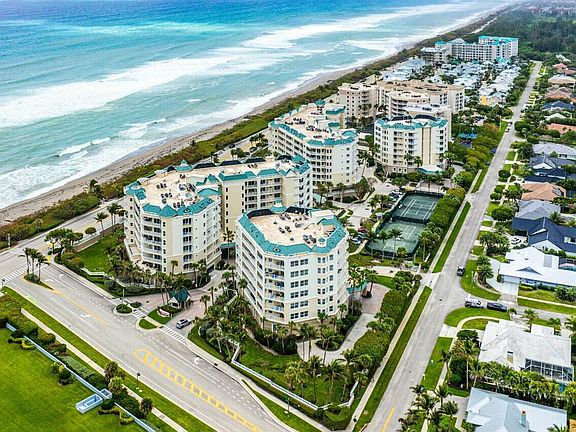 Discover luxury oceanfront living in this elegant 3BD, 3.1BA condominium at Jupiter Ocean Grande, Jupiter's premier gated luxury condo community. Spanning 2,490 SF, this completely updated condo boasts a spacious open floor plan featuring a chef's dream kitchen that seamlessly flows into the dining and living areas, opening to a private outdoor deck for enjoying the ocean breeze year round. Every room shines with meticulous updates, offering a super clean, move-in-ready retreat with abundant natural light. Spacious renovated primary bedroom with a spa like bathroom and large closets plus 2 large guest bedrooms each en-suite with their own private bathroom and covered balcony. Enjoy resort-style amenities, including tennis & pickleball courts, a billiard room, two fitness centers, a sparkling resort style pool and spa, and exclusive beach access. Perfect for pet lovers, this dog-friendly community boasts a pet friendly beach across the street. 2 secured garage parking spaces, a 24-hour manned gated entrance, and an air-conditioned storage area complete the wonderful package this condo has to offer. Experience coastal elegance at its finest!