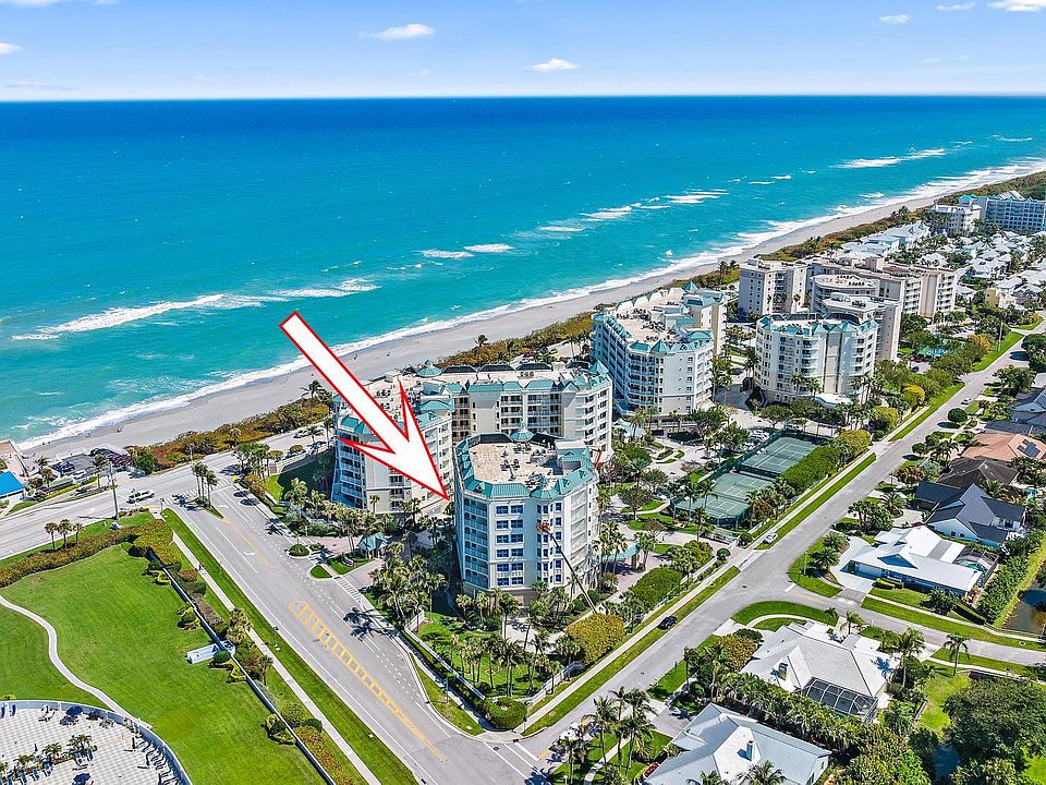 Wake up to endless turquoise waters and radiant sunrises from this elegantly furnished 5th-floor corner condo in the sought-after Jupiter Ocean Grande. Offering nearly 2,500 sq. ft. of living space, this 3-bedroom, 3.5-bath home is filled with natural light and designed for effortless coastal living. The open layout flows seamlessly to a wraparound balcony, where year-round breezes and sweeping ocean vistas await. The primary suite is generously sized, while both guest bedrooms feature private en-suite baths and covered balconies, ideal for visitors. Other highlights include tile floors throughout, a charming breakfast nook, in-unit washer and dryer, new A/C unit, impact windows & doors, central vacuum system, kitchen cabinet pull-outs & custom California closets, providing ample storage. Jupiter Ocean Grande delivers an unparalleled lifestyle with top-tier amenities, including a recently renovated resort-style pool and spa, a 24-hour manned gated entrance, fitness centers, a club room, billiards, tennis and pickleball courts, a card room, two covered garage spaces, and a climate-controlled storage area. This pet-friendly community welcomes large dogs and sits just steps from the dog-friendly beach. No rentals are allowed in this building. Conveniently located near upscale dining and shopping, this is the perfect place to enjoy the best of Jupiter's seaside living.