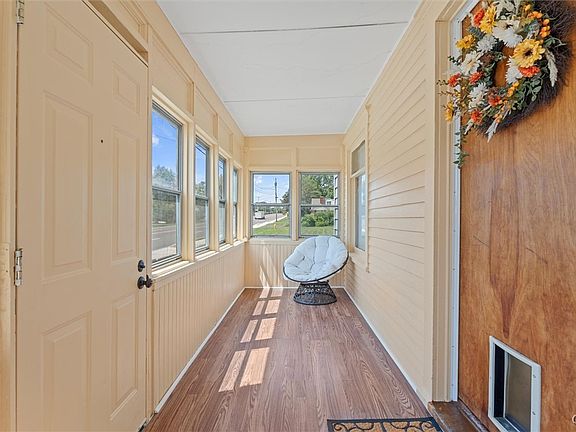 The property boasts delightful features including beautiful hardwood floors, an enclosed front porch perfect for relaxation, and a spacious yard ideal for outdoor activities. The 20-foot wide driveway provides ample parking convenience for residents and guests alike.