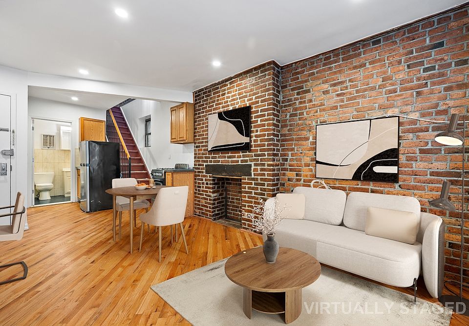 Great studio duplex with a roof deck. Renovated with a full bath & kitchen with stainless steel appliances, brick exposure. Prime location