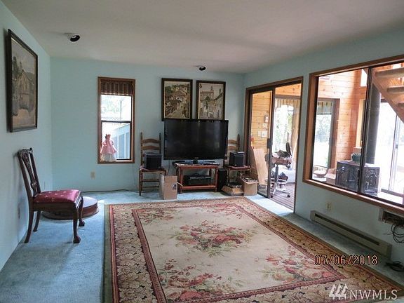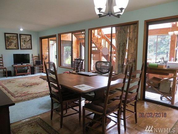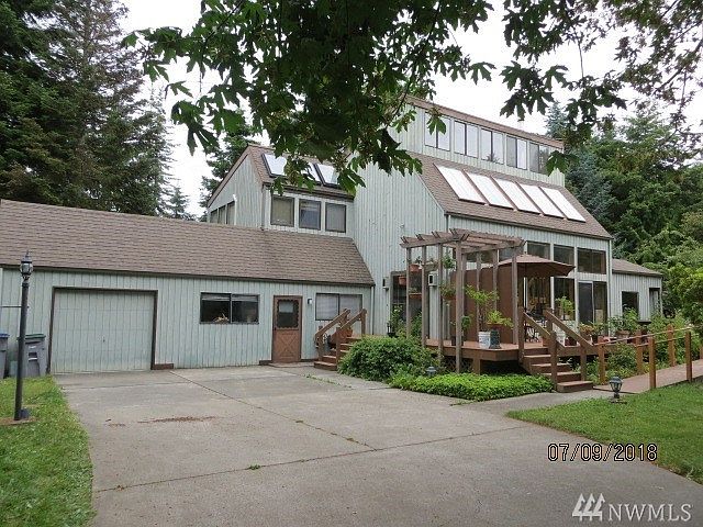 Surrounded by trees for privacy or remove a few for some mtn. view. NW contemporary style home. Atrium provides a sunroom extending the living space w/huge southern deck providing more room for entertaining. There are 3 ductless heat pumps installed. 1 in the atrium, 1 in the upstairs sitting room, & 1 in the hobby room. The wood stove in the atrium hads ambience & additional heating Each bedroom has a private bath. The garage shop space is now a hobby room but there is 1 car attached garage.