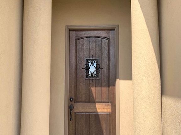 Home Available Now Lease with a one or more-year term in Fredericksburg, Texas. 120 Parlin Lane, Fredericksburg, Texas 78624 is a beautiful new spacious home located in the Madrona subdivision. It is 6 minutes to downtown about 2.3 miles and 5 minutes to HEB about 1.8 miles. It is near the intersection of Live Oak and Smokehouse Road. This beautiful warm modern home was built in the summer of 2022 and is approximately 1941 sq. ft. It is a well laid-out one-story home with 3 bedrooms, 2 full baths, a covered back yard patio, a two-car attached garage, attic in the garage with radiant barrier roof sheathing, a privately fenced back yard and a Rain Bird sprinkler system for the front and back yards. The floorplan has an amazing open central living area with a large dining room and a kitchen with a unique central command island with granite countertops that can seat up to six or more. A very nice glass pantry door opens to a large walk-in multi-leveled shelved pantry. The faucet fixtures throughout the home have oil rubbed bronze fixtures. All new electric Energy Star appliances. Microwave, oven, dishwasher, refrigerator, washer and dryer, central heating and cooling with energy efficient programable thermostat, Kinetico water softener system. The windows are large, very appealing and are low E-Energy Save double paned glass with custom window blinds. There is lots of indirect light with large, medium and small windows appropriate to each room. There are stunning architectural features of coffered ceiling and wall features in the design. The laundry room has shelved enclosed above cabinets and space for more storage on one side of the new appliance units. The largest bedroom is inviting and private. The closets are a large walk-in with rows of shelves and layers of wooden clothes rods. The "spa" bathroom is unique as well with two-person shower space with half tiled wall on one side. There is a separate water enclosed water-closet and two separate vanities with sinks and large mirrors. The second and third bedrooms are down a separate hallway across from the laundry room and second full bath with tub. One of these two bedrooms has a large window seat that two people can sit and lounge upon. There is tile flooring throughout with ceiling fans in each bedroom and the living room. Law Security system with carbon dioxide and smoke detectors are wired into the system and available. Spectrum cable and Wi-Fi network with high-speed Internet access is available. There is a pest control in-wall system installed when the home was built. Utilities are required for electric, wi-fi, water and trash pick-up. Tenant yard maintenance required and a light-weight easy to use Ryobi battery lawn mower is provided. There are three beautiful large backyard trees for privacy and shade. There are also two trees in the front and one on the side yard as well. The neighborhood is walking and bicycle friendly. Utilities are required for electric, wi-fi, water and trash pick-up. Pet deposit if applicable. No smoking. Yard maintenance required, light-weight Ryobi battery lawn mower is available to use and is on the property.