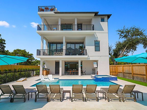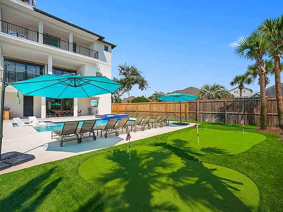 NEW FULLY FURNISHED AND TURN KEY RENTAL WITH 423K in bookings! A professionally designed turnkey rental opportunity unlike any other on the coast! Every detail has been thought of for the savvy investor to just take over. Seller will manage for 1 yr at 5%. Perched just blocks away, this home offers a front-row seat to one of nature's most breathtaking spectacles - the Gulf view. This 5800+ SQ FT luxury home is a testament to the art of coastal renting. Embrace the tranquil beauty of the Gulf and make this piece of coastal paradise your own. The backyard features a heated pool/spa, putting green, and gas grill. Step inside to find an entertainment room including games and pool table, work out room, and 8 ensuites, plus a bunk room. All furnishings and golf cart convey. Don't miss out! This custom-built home showcases the finest craftsmanship and attention to detail, with soaring ceilings, exquisite finishes, and an open-concept design that allows natural light to flood every corner. The gourmet kitchen is a chef's delight, boasting high-end appliances, quartz countertops, and a center island that beckons for gatherings. A private backyard oasis features a heated pool, a spa, and lush landscaping, creating a serene retreat for relaxation and entertainment for guests.